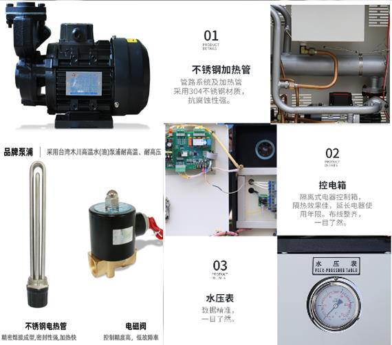 引進(jìn)國外先進(jìn)的工藝技術(shù),選擇水作為傳熱介質(zhì),只需要連接自來水即可,使用方便且無污染.按使用溫度分為120度水溫機(jī),150度水溫機(jī)和180度水溫機(jī)三大類型.實(shí)際控溫溫度大于180℃時(shí),建議采用油溫機(jī).