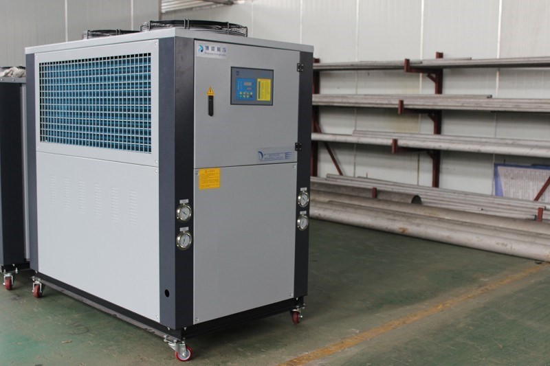 風冷式冷水機介紹:在它機身內含有保溫水箱和水泵,無需再另加冷卻水塔來散熱.安裝和移動非常方便.但是冷水機對工作環(huán)境要求較高,因為它是以熱風循環(huán)來制冷的,如果安裝車間的通風效果不好的話,會直接影響到制冷效果.
